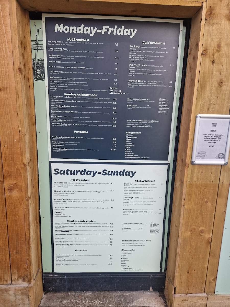 Puck Lane Menu